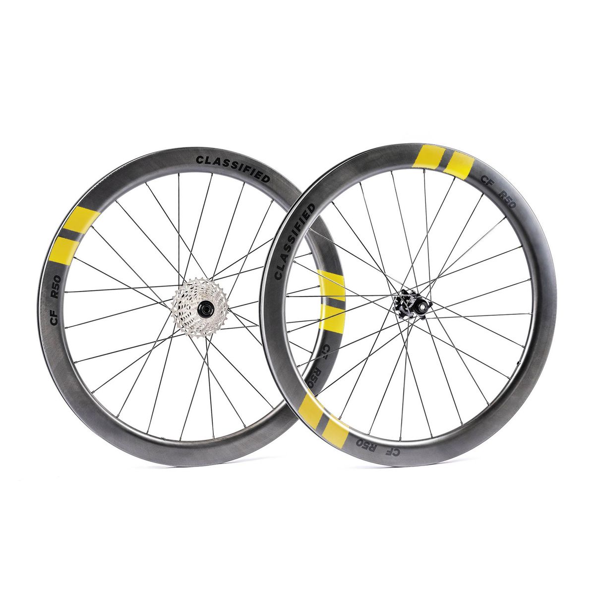 R50 Gold - Les rodes Classified R50 Gold són les rodes de carretera més aerodinàmiques de la gamma Classified. Tenen un perfil de 50 mm i una amplada de llanta interior de 19 mm.