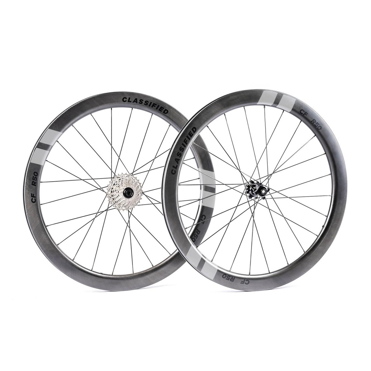 R50 Silver - Les rodes Classified R50 Silver són les rodes de carretera més aerodinàmiques de la gamma Classified. Tenen un perfil de 50 mm i una amplada de llanta interior de 19 mm. Compatibles amb tubeless i perfectes pressions més altes.