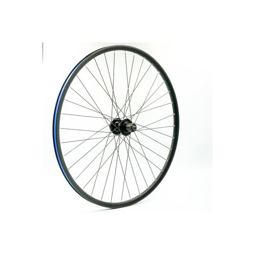 Rueda trasera 700BTT, alum, negra, doble pared, disco 6 huecos, QR10