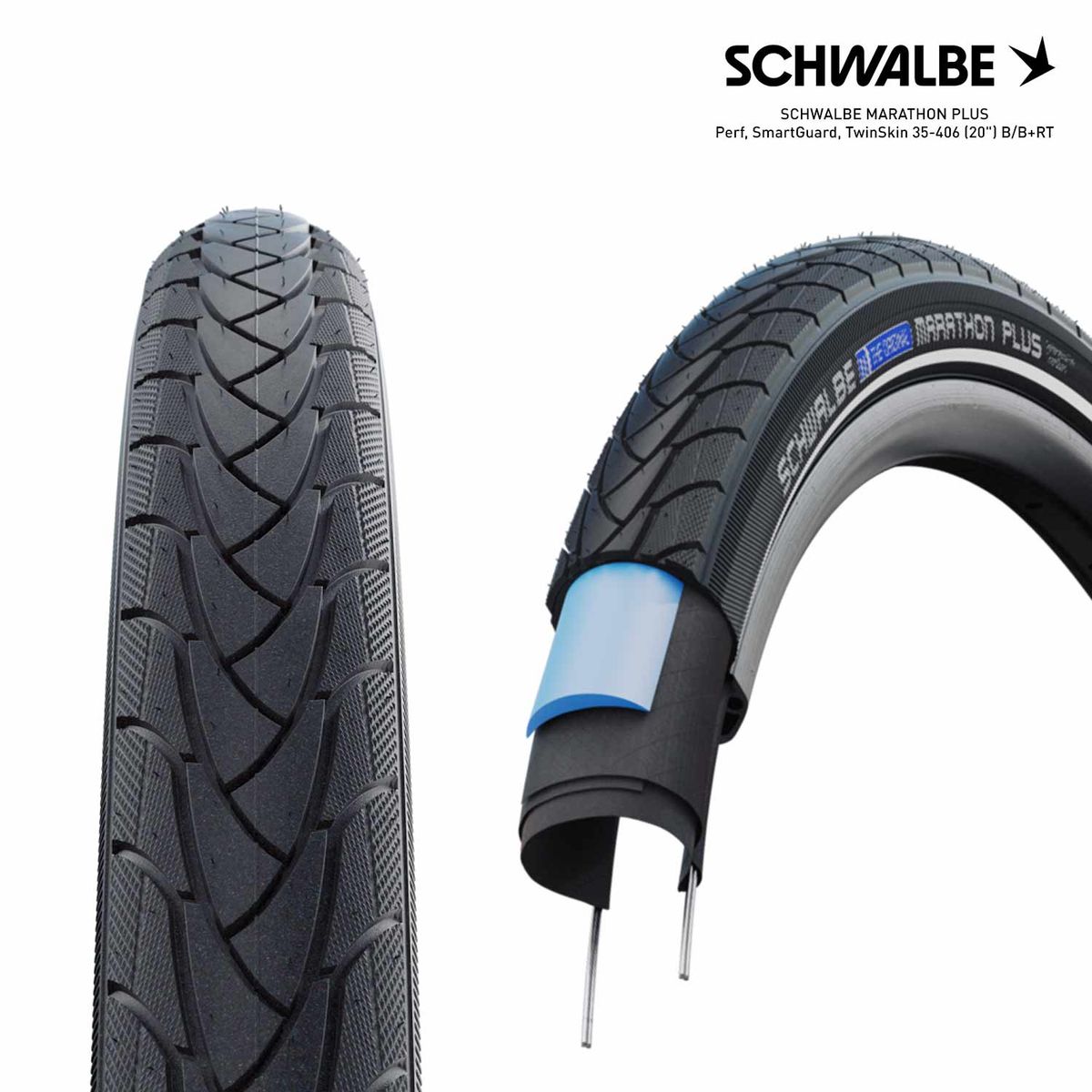 SCHWALBE MARATHON PLUS Perf, SmartGuard, TwinSkin 35-406 (20") B/B+RT